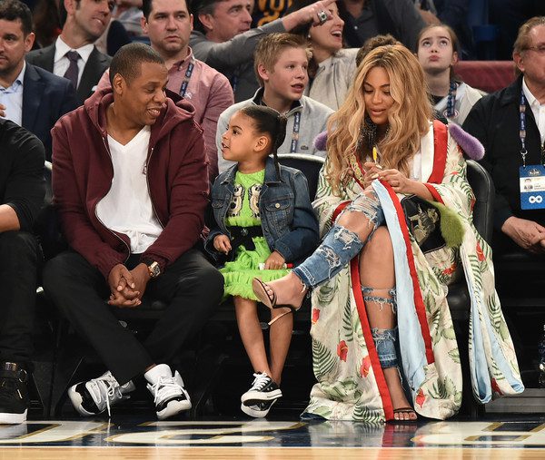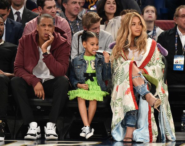 Jay Z, Blue Ivy Carter and Beyoncé Knowles attend the 66th NBA All-Star Game at Smoothie King Center on February 19, 2017 in New Orleans, Louisiana.