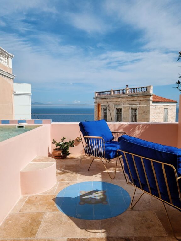 In Ermoupoli, the capital of Syros, the Aristide Hotel stands as a temple of refined taste. Housed in a grand neoclassical mansion, the hotel is as much an art gallery as it is a boutique stay. Each suite is a work of art, blending Italian marble, plush textiles, and curated contemporary artwork. Rooftop cocktails here come with sweeping views of the Cycladic skyline, while October’s calm offers the perfect opportunity to explore Syros’ storied streets and neoclassical facades. At Aristide, you’re not just staying—you’re part of a living canvas where elegance, creativity, and heritage intertwine.
