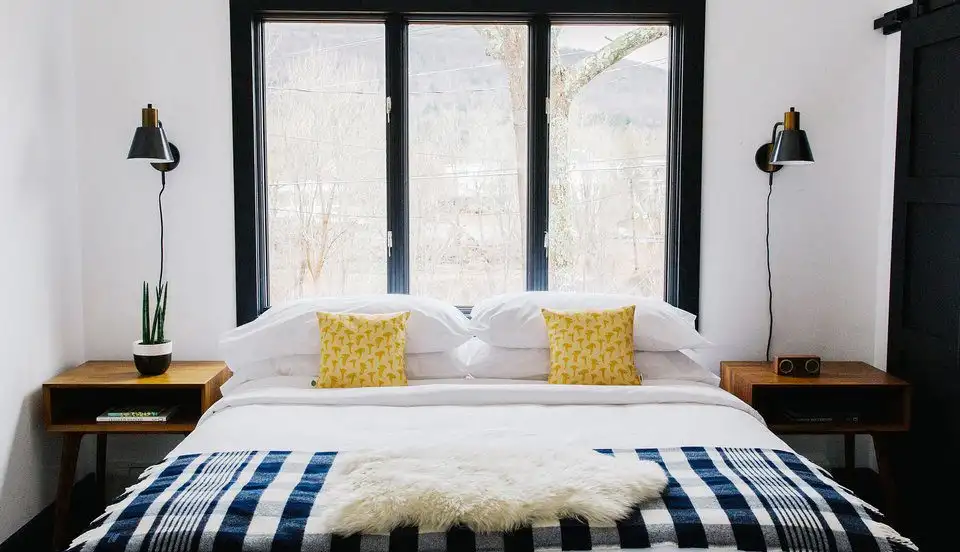 Just two hours from the city, the Eastwind Hotel & Bar brings hygge vibes to the Catskills of New York. The 19-room boutique is housed in a 1920s hunting lodge that has been renovated with a Scandinavian influence. All the rooms and suites are cozy retreats with rich wood floors, vintage rugs, and fireplaces in some. For more of a secluded experience, they also offer minimalist cabins nestled in the woods. Each one has its own queen bed, bathroom, and private fire pits. No matter where you stay, panoramas of the Windham Mountain are in abundance. Spend the day hiking, biking, and exploring before ending the night with a seasonal cocktail at the on-site bar.