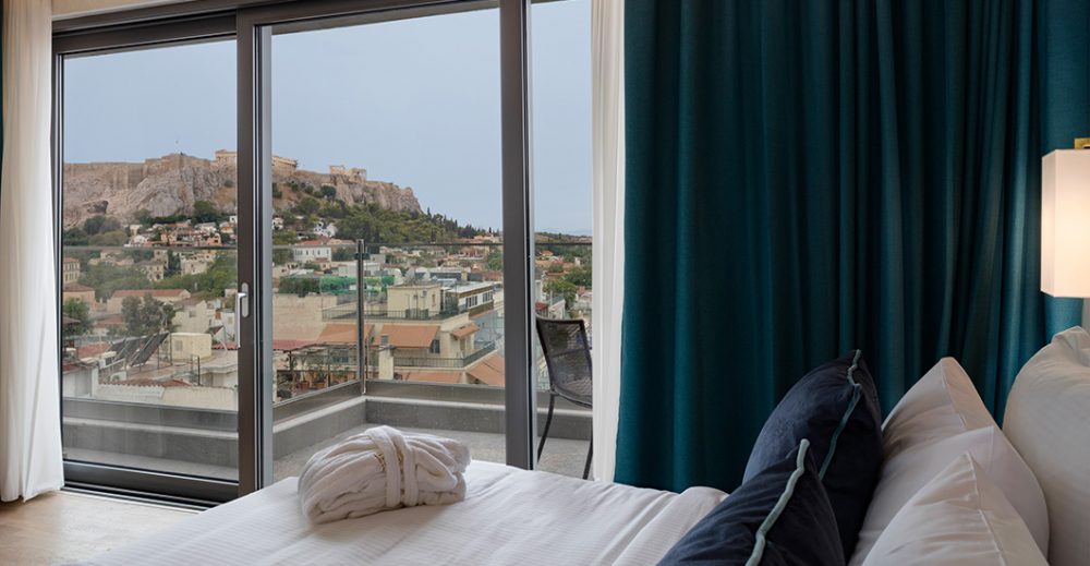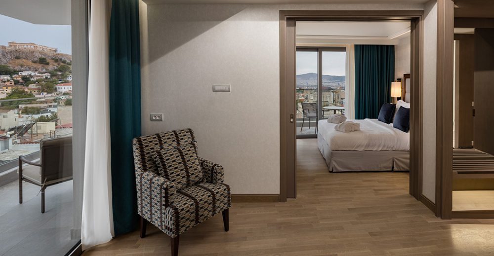 Acropolis Suites offer balcony with spectacular views of the Acropolis, white marble bathrooms, coffee machine, hardwood/parquet floors and 48’’ Samsung Smart TV Led.