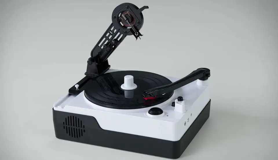 Created in collaboration with designer Yuri Suzuki, the Easy Record Maker from Japanese firm Gakken is able to both play vinyl records and record them. It has a mini audio jack that can accept input from a phone, computer, or any other sound source, as well as a cutting arm that permanently etches the incoming signal onto five-inch vinyl discs. It took five years for the project to become reality; the player supports both 33 and 45 rpm and arrives with 10 blank records as well as a magazine detailing its design and background.