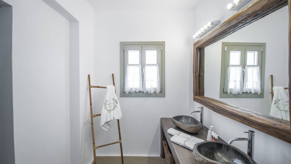 It consists of two villas and two suites. Each villa is approximately 130 sq.m. and can accommodate 2-7 guests and each suite is approximately 70 sq.m. and can accommodate 2-4 guests. The complex is decorated with refined taste by respecting one culture of the Cyclades and on the other providing luxury and comfort. The villas have an indoor pool and indoor spa hydrotherapy horizontal shower. There is a large outdoor pool, private courtyards, garden and our priority is our guests have an upper class experience and staying stay etched in their mind.