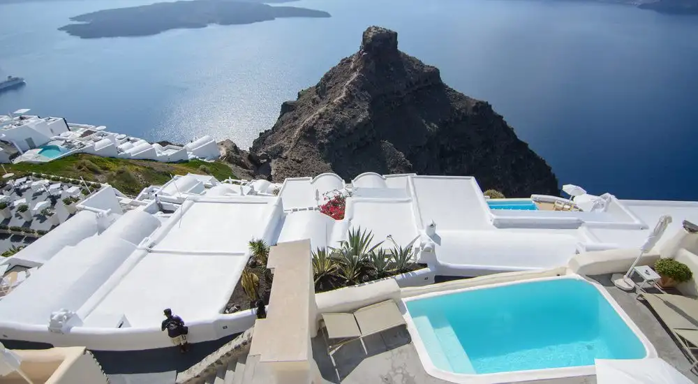 Kapari Natural Resort in Santorini’s Imerovigli village is a smooth wedding cake of a hotel, with all the caldera cool you’d expect: cavernous rooms, neutral hues and a whole lot of white and blue. The curvaceous cave rooms allure with the softest beds, oversized showers, and the odd private terrace, some with a Jacuzzi. The stay can also tick off moreish Mediterranean food and a chilled-out pool – but the at-your-beck-and-call staff are perhaps Kapari’s best asset.