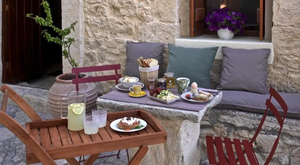 Each morning, a delicious breakfast of local Cretan delicacies is prepared for you by our dedicated kitchen team, all home-made, and with further fresh snacks available throughout the day. Particular items on offer include grape jams and must biscuits. Dinner can also be arranged in advance, drawing on local cuisine, regional specialities, and of course wine – all prepared in accordance with your own tastes and preferences, and naturally paired with the renowned Boutari wines of the estate.
