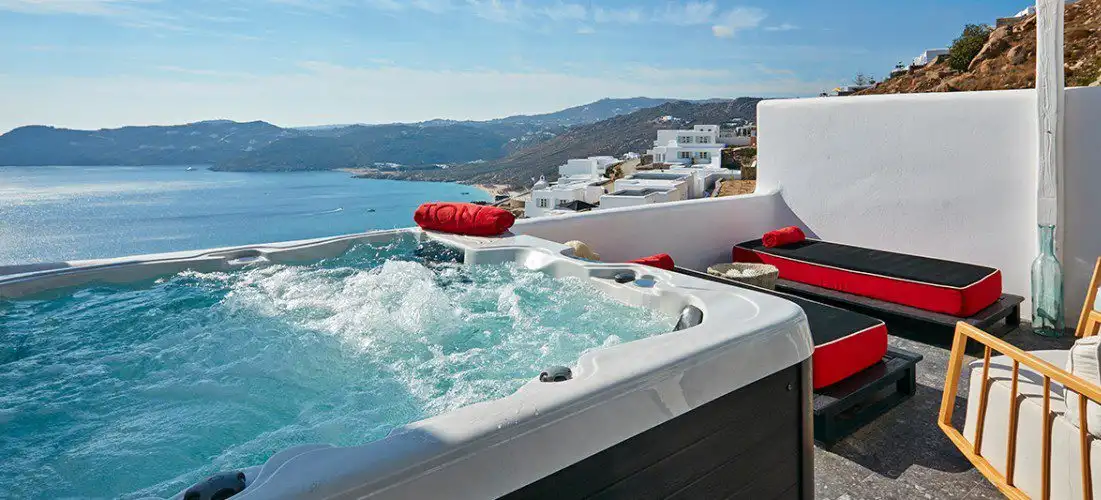 We may only be 3 months in 2018, but we are ready for a vacation, and we are sure you are as well. Today we get a look at a beautiful destination that is sure to provide some rest and relaxation. Today we get a look at The Myconian Avaton, a beautiful hotel that is located above Mykonos’ Elia Beach, overlooking the Aegean Sea. Here we find a beautiful traditional stone facade and rustic wood windows, which blend flawlessly with the local Cycladic architecture.